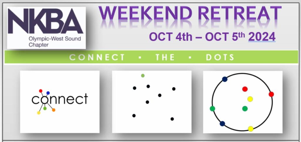 Come “Connect the Dots” at our 9th NKBA Olympic West Sound Annual Chapter Weekend Retreat! 4 CEUs with 2 National and local speakers, fellow designers, architects and vendor industry representatives! Nibble on appetizers while checking in and visit with some local vendors!